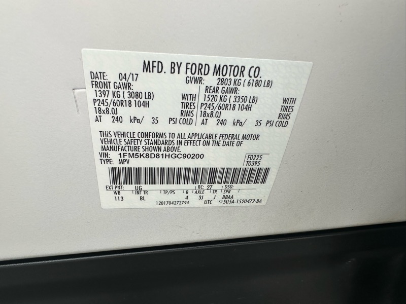 Vehicle Inquiry for 2017 Ford Explorer XLT 4WD