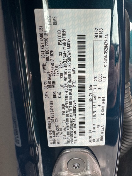 Vehicle Inquiry for 2020 Ford Escape SE AWD